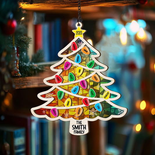 Personalized Family Tree Suncatcher Ornament 2025, Family Christmas Hanging Decor