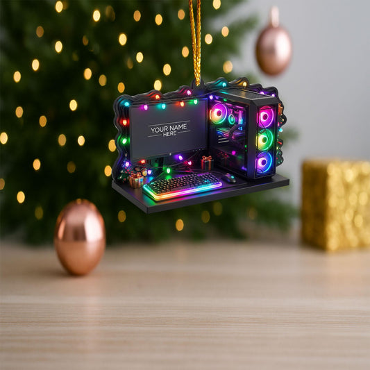Personalized PC Gaming Setup Christmas Ornament, Custom Name PC Gamer Gift, Unique Gift for Gamer, Christmas Tree Hanging Decoration