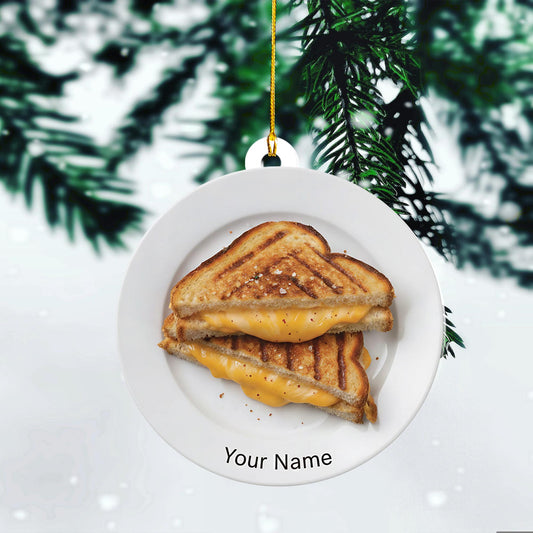 Custom Name Grilled Cheese Xmas Ornament, Unique Comfort Food Lover Gift, Personalized Kitchen Decor, Funny Foodie Tree Hanging Charm