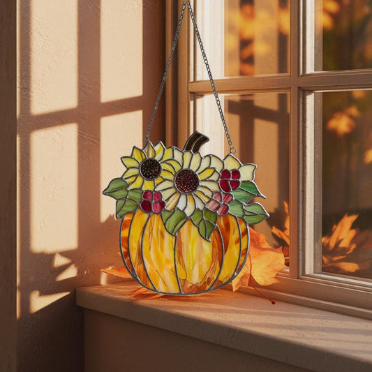 Autumn Pumpkin Acrylic Suncatcher, Halloween Thanksgiving Window Hanging,Fall Harvest Window Decor,Housewarming Gift For Mom,Home Decor Gift