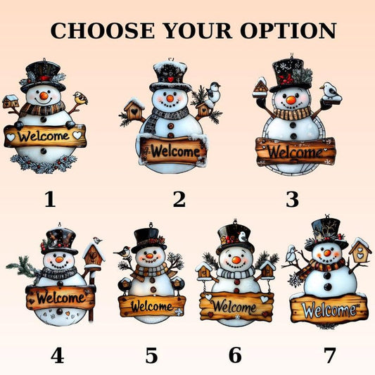 Festive Snowman ACRYLIC Window Hanging, Faux Stained Glass Welcome Suncatcher, Christmas Entry Sign With Bird Design