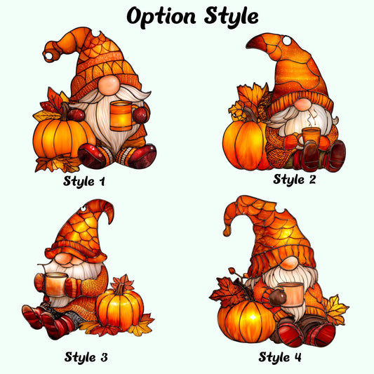 Fall Gnome Trio Acrylic Suncatcher – Autumn Faux Stained Glass Suncatcher, Gift for Gnome Lovers, Fall Home Art Decor