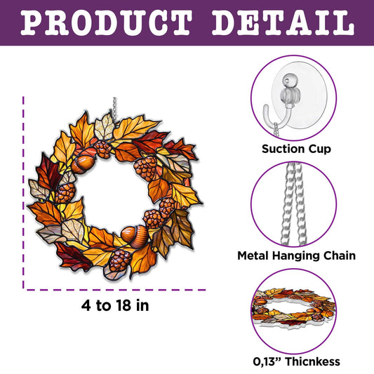 Fall Wreath Acrylic Suncatcher for Window Hanging, Autumn Leaves and Acorn Decoration, Thanksgiving Home Decor, Seasonal Gift Idea